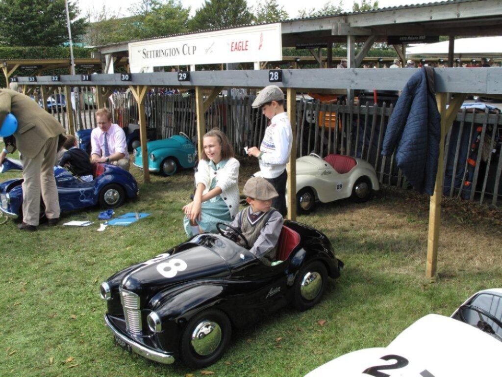 Much more exciting, at least for the younger guests, are the Austin J40 pedal cars. Thirty of them, all driven by children, competed in two races on the start-finish straight. “Don’t stop pedaling until you cross the finish line,” joked the race director.