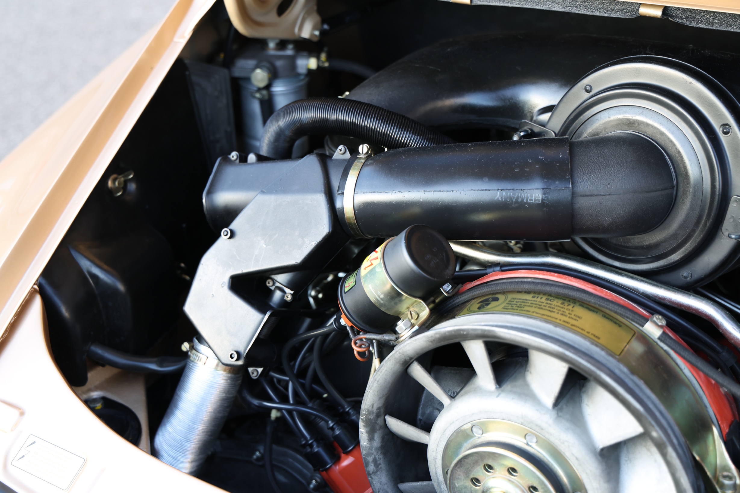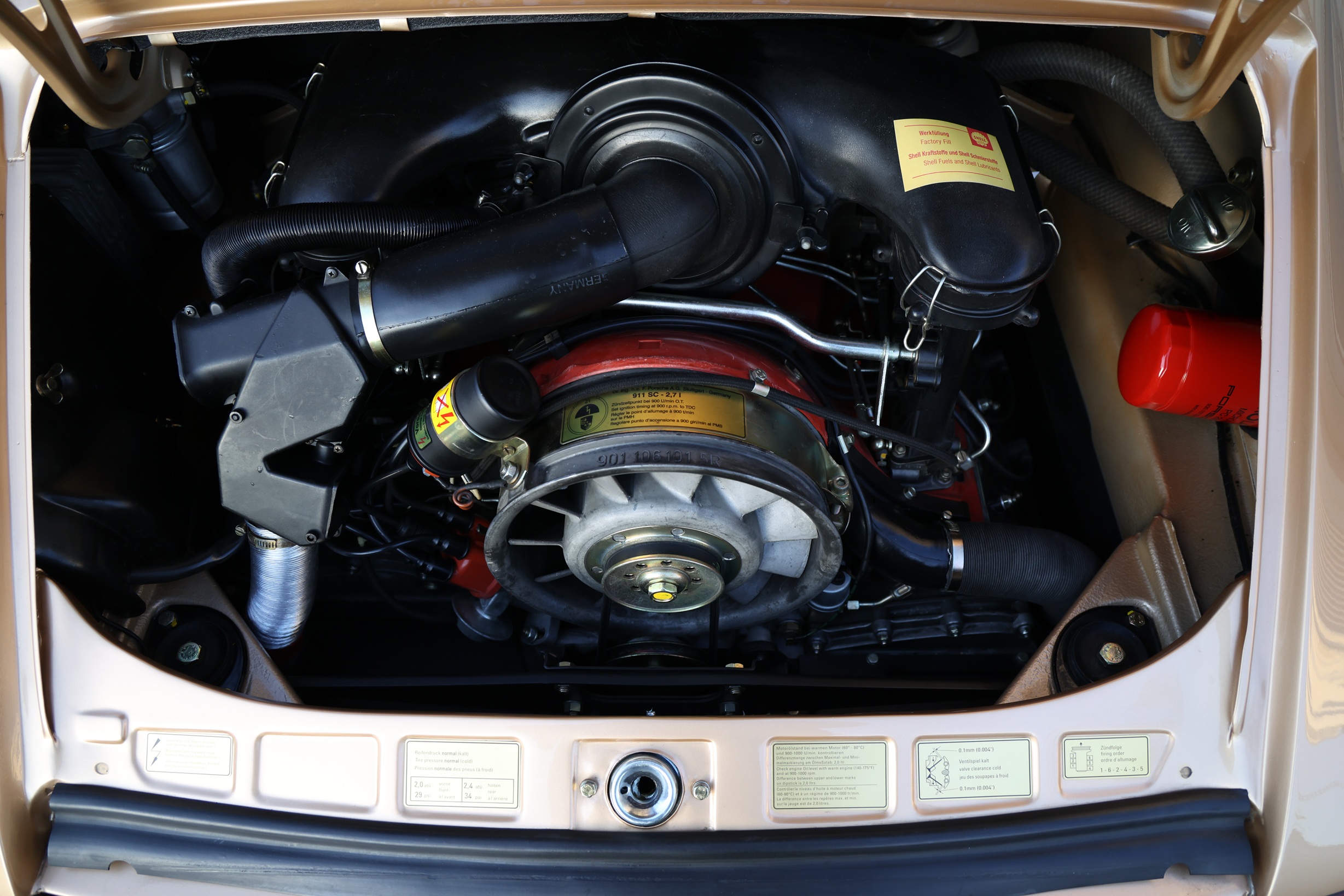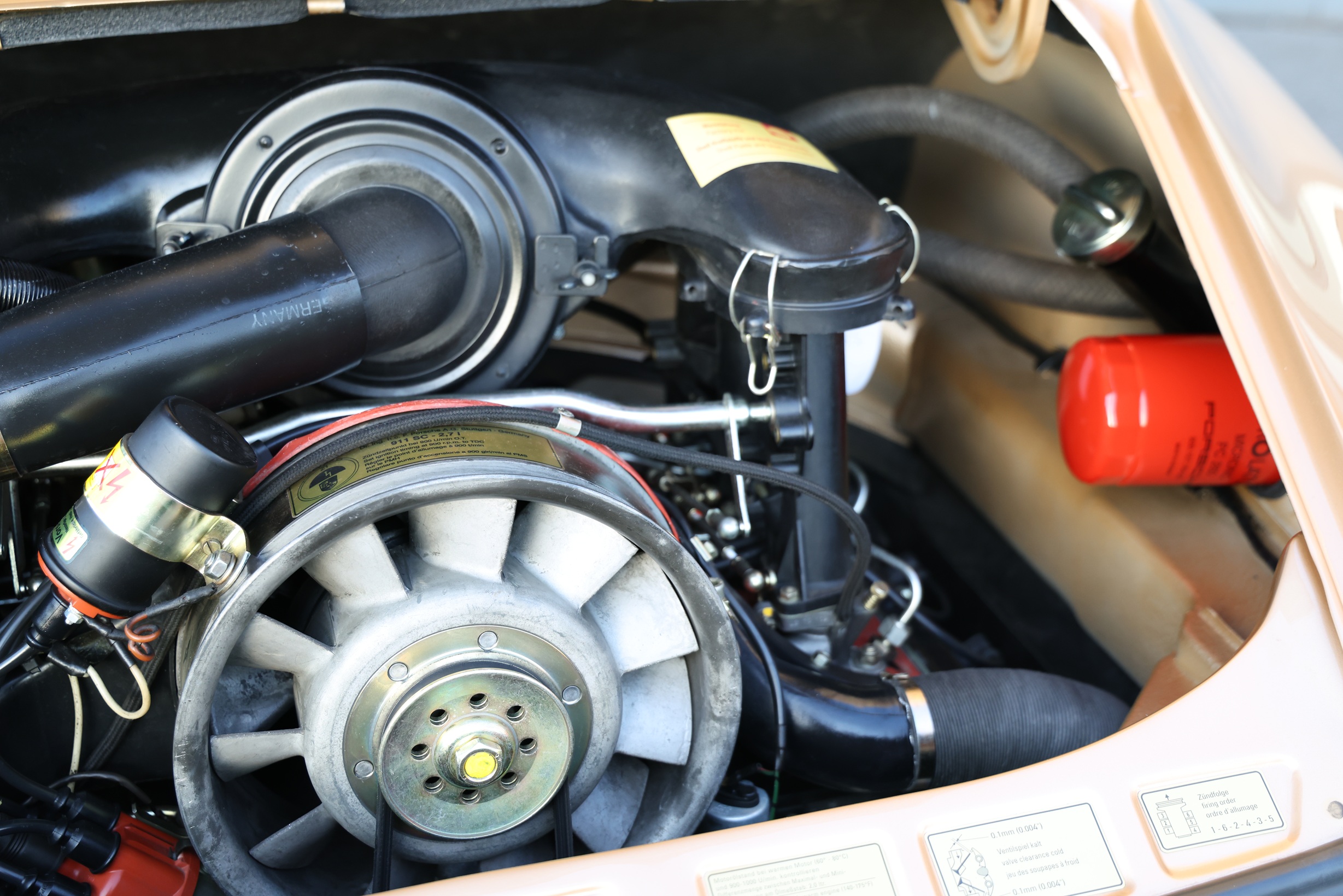 According to the Porsche certificate, this beautiful Porsche Targa was delivered to its first owner on May 12, 1975, via Porsche Konstruktionen AG in Vienna and was first registered on May 23, 1975. The vehicle configuration included a headlight cleaning system, alloy wheels (7×15 and 8×15 inches), sports seats, a Targa folding roof, a 5-speed transmission, and tinted windows. The engine and transmission numbers also correspond to the factory delivery. The second owner, Mr. Neckam, drove the car for 40 years, from November 1977 to May 2006, covering a total of only 57,225 km. The beautiful MFI then spent its time in a garage. A logbook from those years documents the low mileage. On behalf of Dr. Konradsheim, the vehicle underwent extensive and well-documented restoration between 2012 and 2017 by the specialist company Sport- und Rennwagenservice Stimming in Bad Segeberg, Schleswig-Holstein. Before the restoration, the odometer reading was 81,336 verifiable kilometers. At the beginning of 2018, the current owner purchased the perfectly restored Targa.