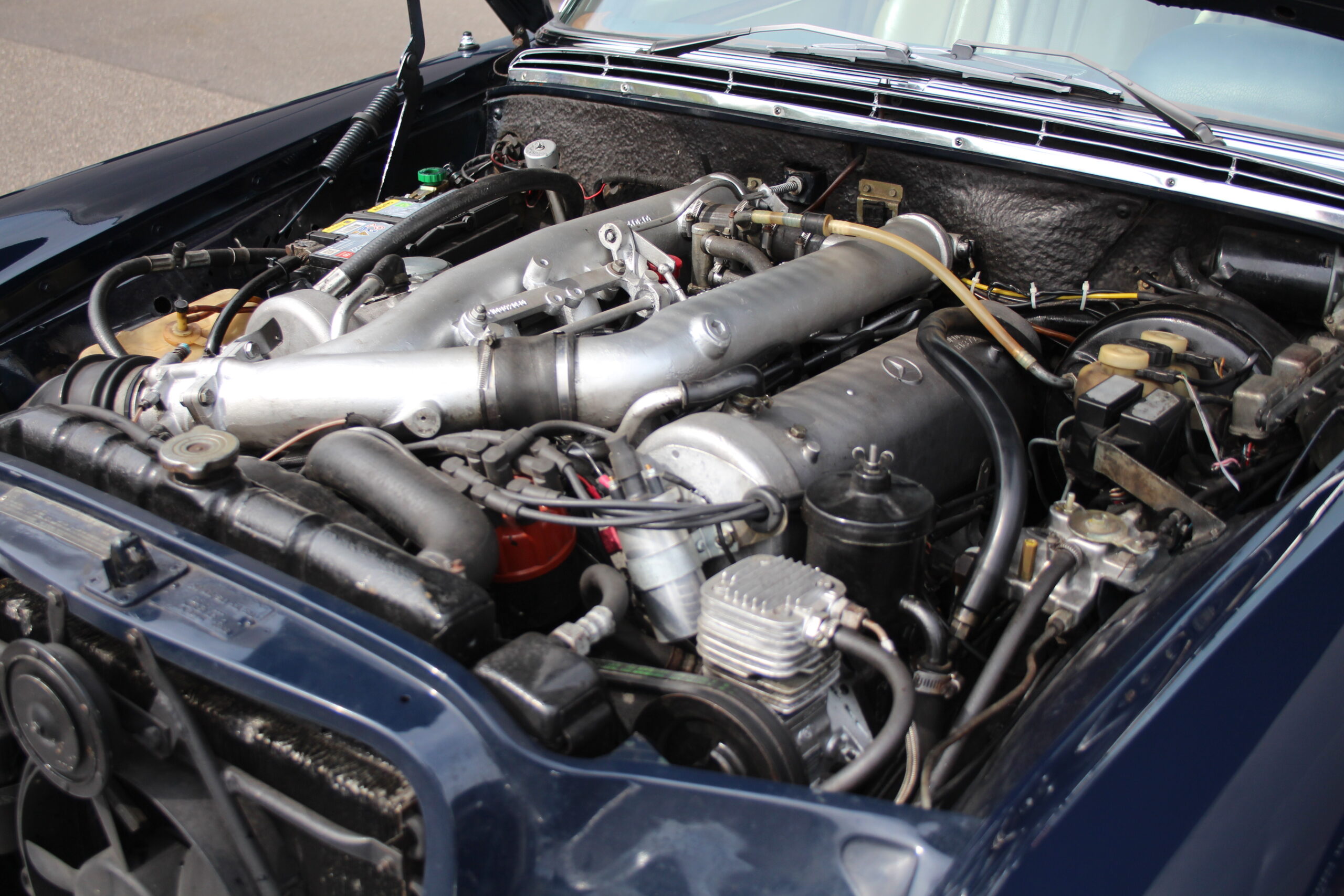 Diese schöne Mercedes-Benz Limousine verfügt über den V8-Motor und das Automatik Getriebe des Mercedes-Benz 600 und erreichte mit 250 PS (184 kW) bei 4000/min das Leistungspotential hochkarätiger Sportwagen seiner Zeit. Seine Spitzengeschwindigkeit beträgt 220 km/h, die Beschleunigung von 0 auf 100 km/h 6,5 Sekunden (Werksangabe). Das maximale Drehmoment beträgt 500 Nm bei 2800/min. Von außen war der 6.3 nur an den breiteren Reifen in der Größe 195–14 oder 205–14 und den H1-Halogen-Doppelscheinwerfern zu erkennen. Dadurch entfielen die Nebelscheinwerfer in der Leuchteinheit. Stattdessen wurden neben dem Kühlergrill separate runde Nebel-scheinwerfer angebracht. Der Preis des neuen W-109-Spitzenmodells betrug anfangs 39.160 DM und lag zum Ende der Modellreihe im Januar 1972 bei 47.397 DM, was nach heutiger Kaufkraft und inflationsbereinigt 87.000 bzw. 90.100 Euro entspricht. Sehr gute Dokumentation über kürzlich ausgeführte Reparaturen und Überholungen.