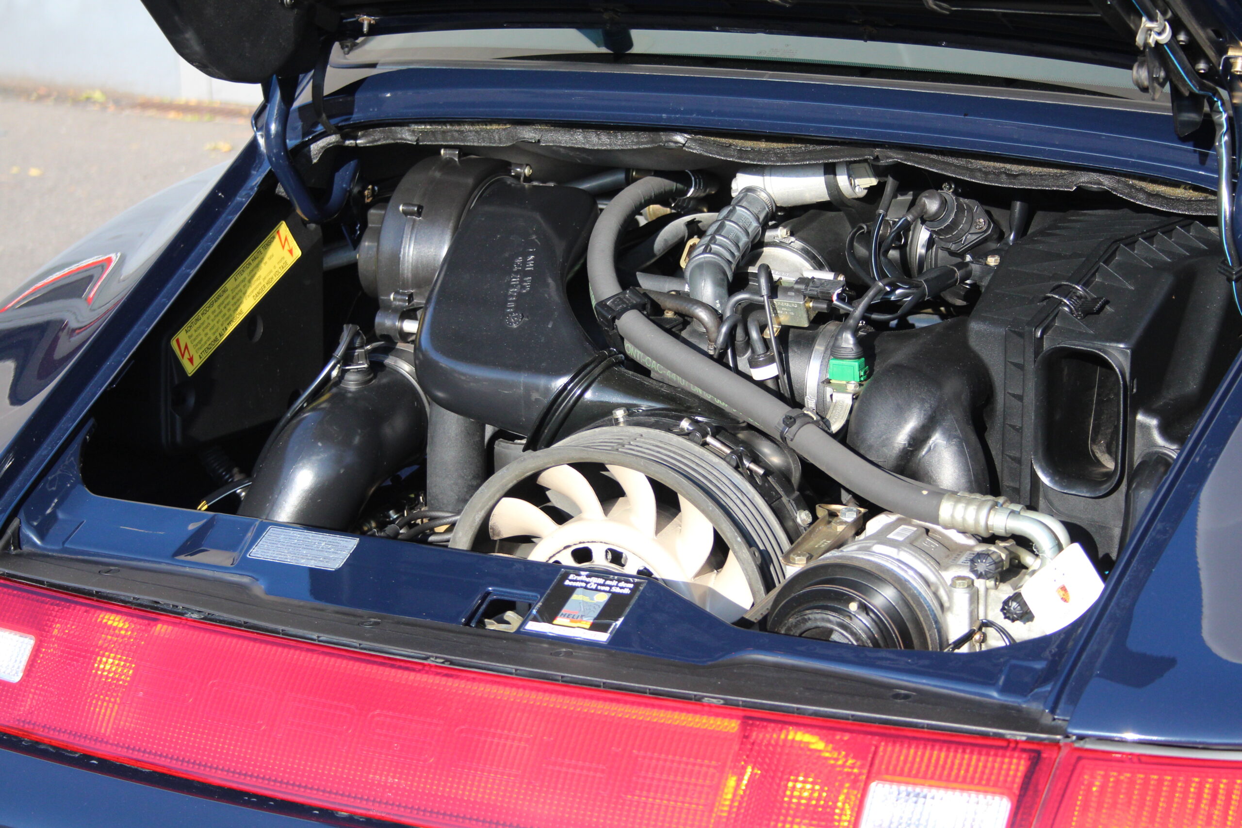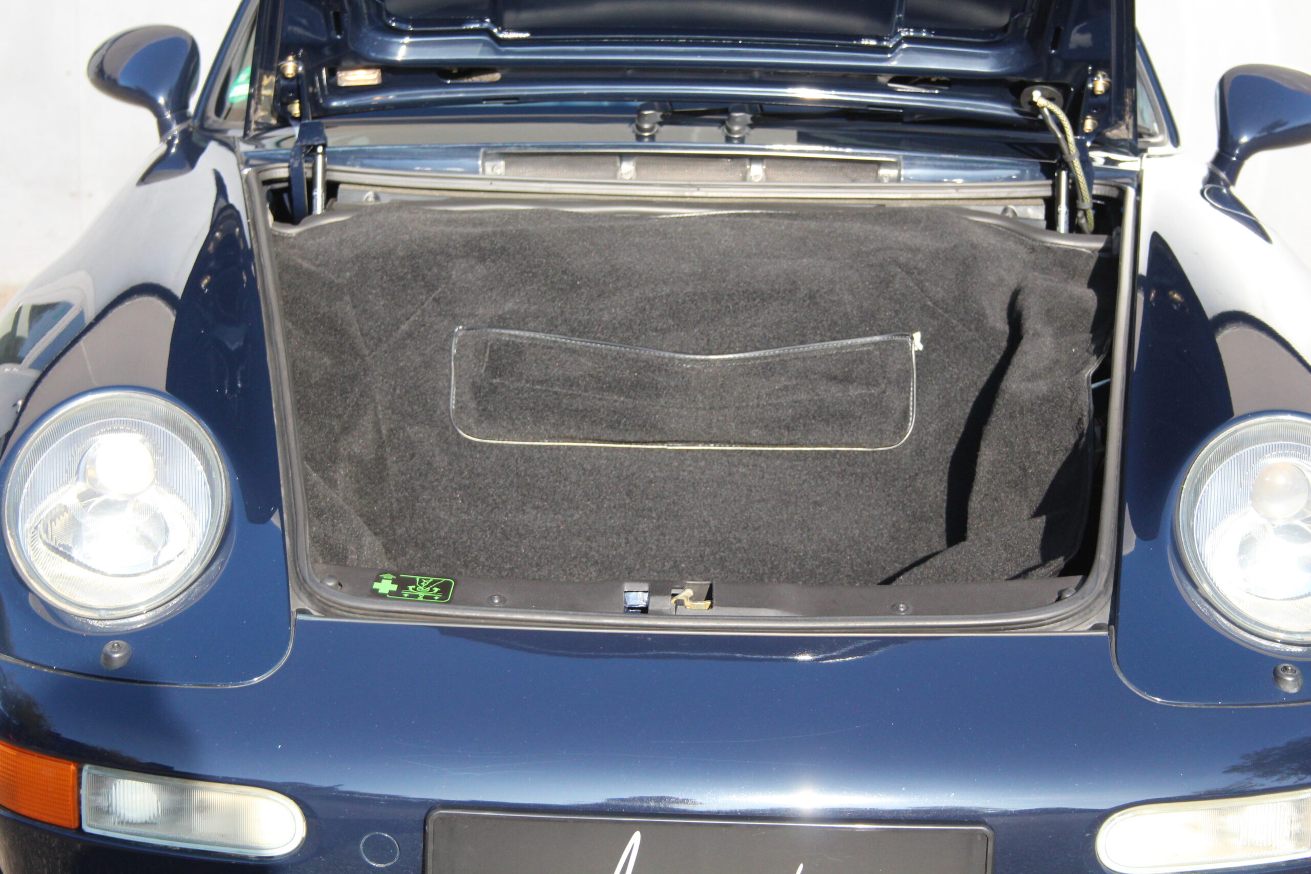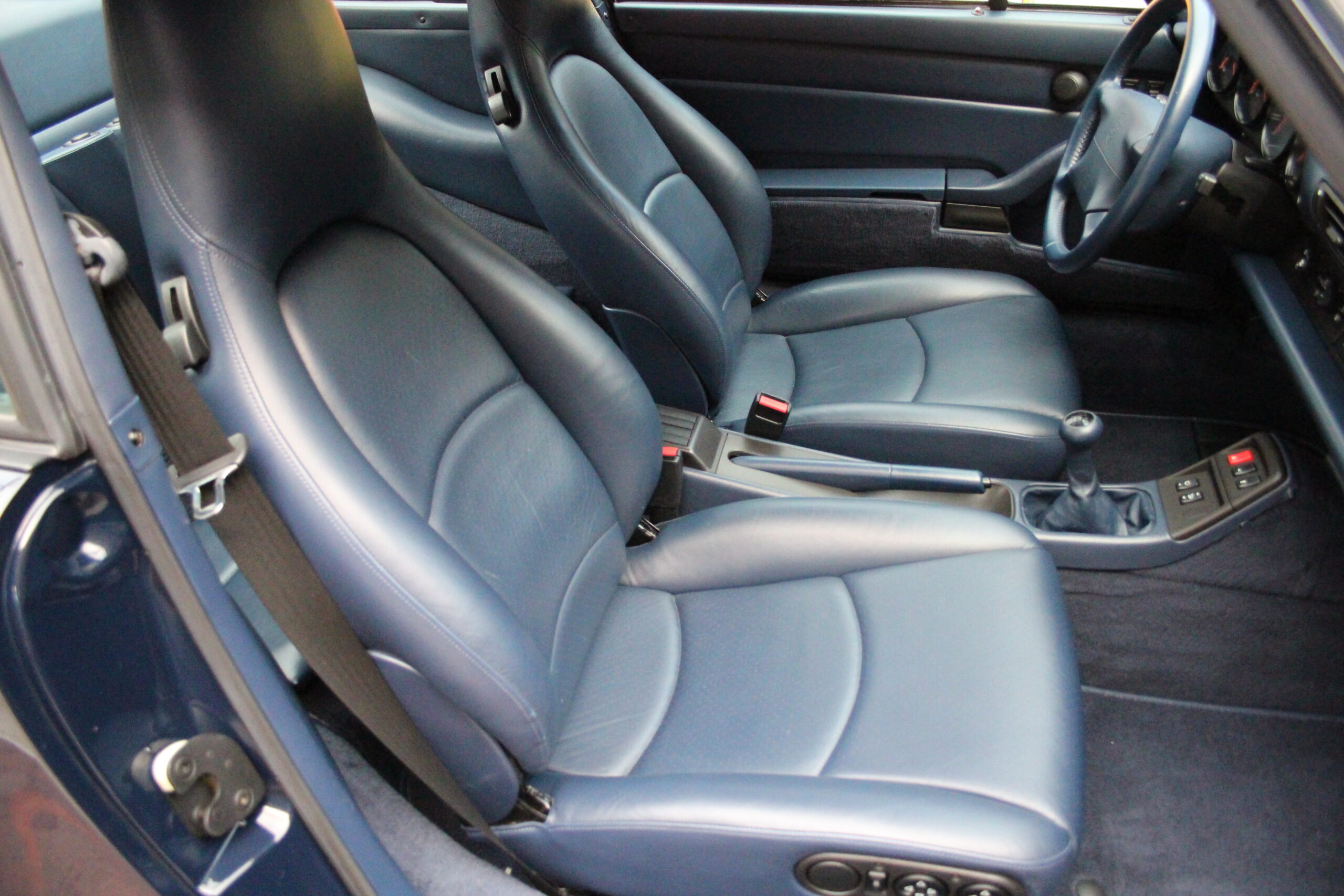 Das Fahrzeug, mit der seltenen Sonderfarbe Uni-Dunkelblau, verfügt über eine immer noch absolut neuwertige Lederausstattung, ebenfalls in Dunkelblau. Der Porsche hat am 8. Dezember 2025 einen frischen Service durch das Porsche Zentrum Hagen bekommen. Die Pirelli-Reifen sind ebenfalls neu.