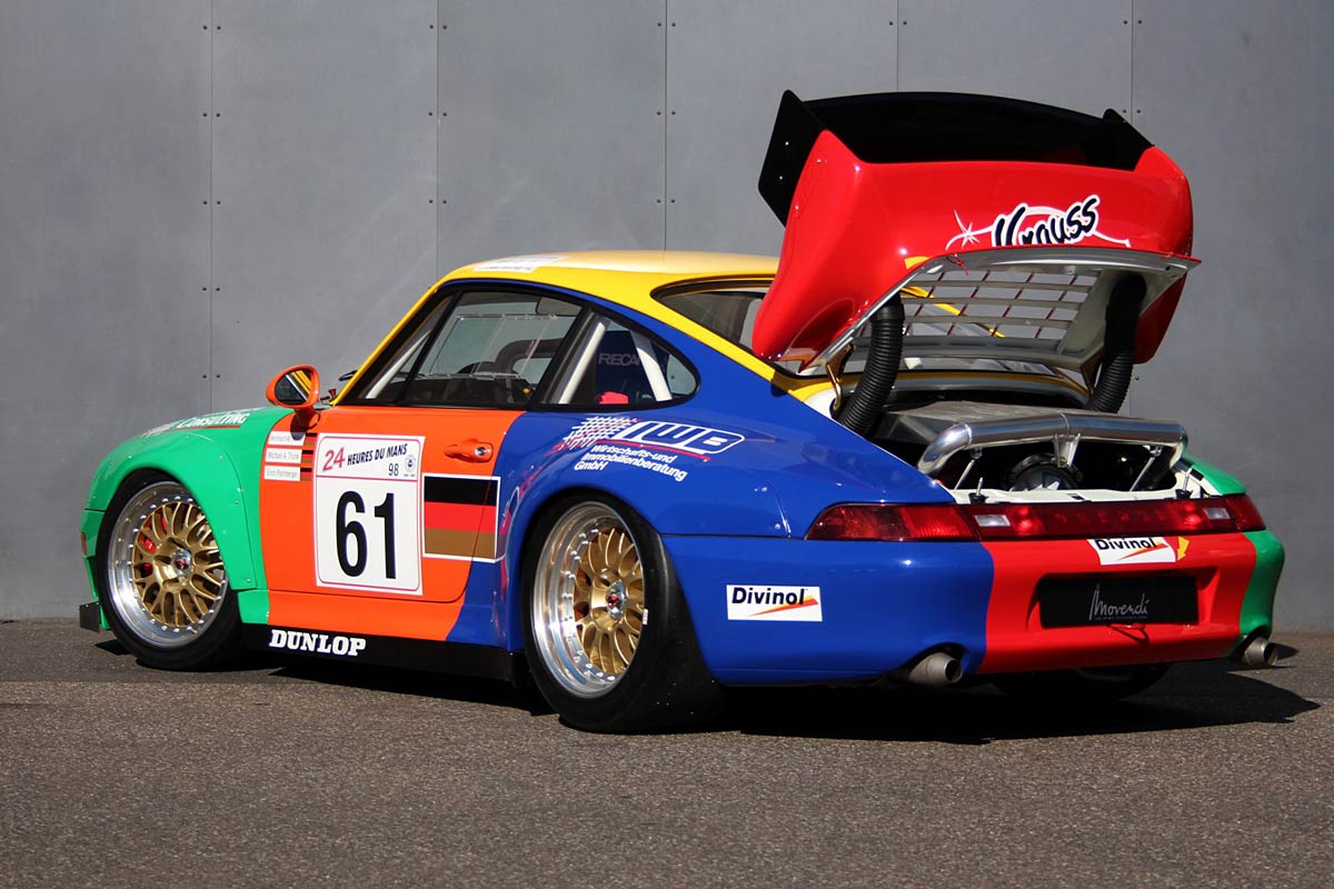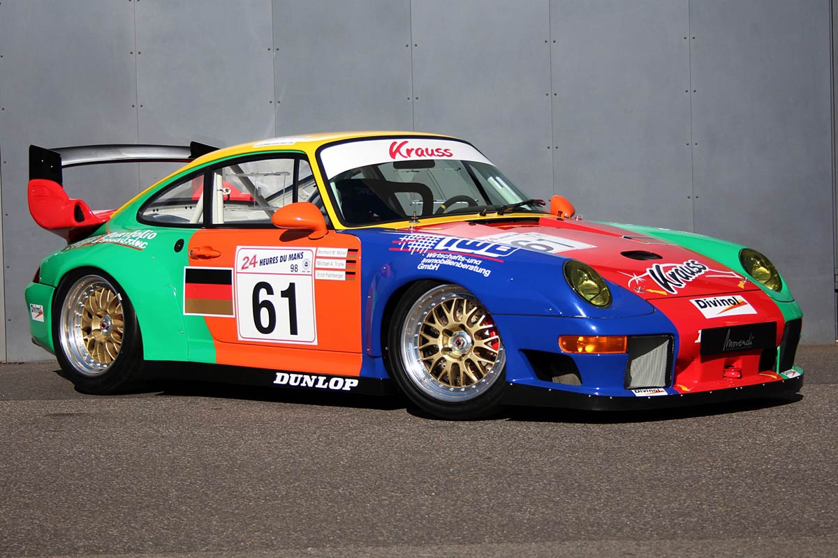 Im Jahr 1998 ging der 993 GT2 mit dem auffällig bunten Livrée an den Start in Le Mans. Laut vorliegender Rechnung wurde das Fahrzeug von der Porsche AG im November 1996 an seinen ersten Besitzer verkauft und bis 1998 eingesetzt. Später gelangte er zu Otto Altenbach, der ihn in verschiedenen Rennserien sporadisch einsetzte. Vor wenigen Jahren wurde der Rennwagen an einen Enthusiasten und Sammler verkauft. Dieser ließ ihn durch Spezialisten von 2015 bis 2018 von der Roh-Karosserie auf vollständig überholen. Das Fahrzeug verfügt noch immer über seinen originalen Motor und Getriebe (Matching Numbers), welche vollständig revidiert wurden. Die Kosten betrugen über 300.000€ und sind dokumentiert. Dies ist eine seltene Gelegenheit einen Porsche GT2 R in einem neuwertigen Zustand zu erwerben. Ein vielversprechendes Investment, ideal für hochkarätige Motorsportevents wie „Le Mans Classic“ oder „Endurance Racing Legends“.